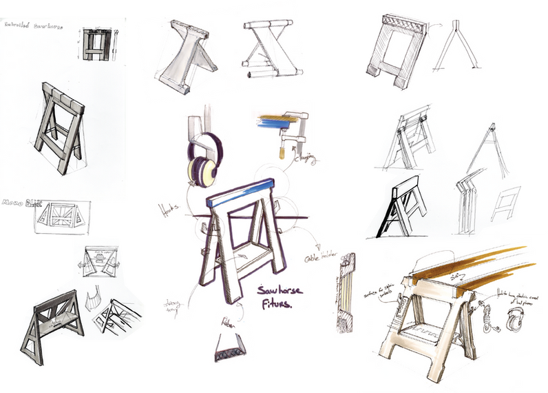 Form follows function. This project aimed to create a lightweight sawhorse to replace a very popular older version, as part of the company’s effort to reduce the carbon footprint of its products. The result was a lighter product with improved functionality, an open-ended design that allows each user to customize its use according to individual needs. This design owes its success to the combined efforts of collaborating designers and engineers.